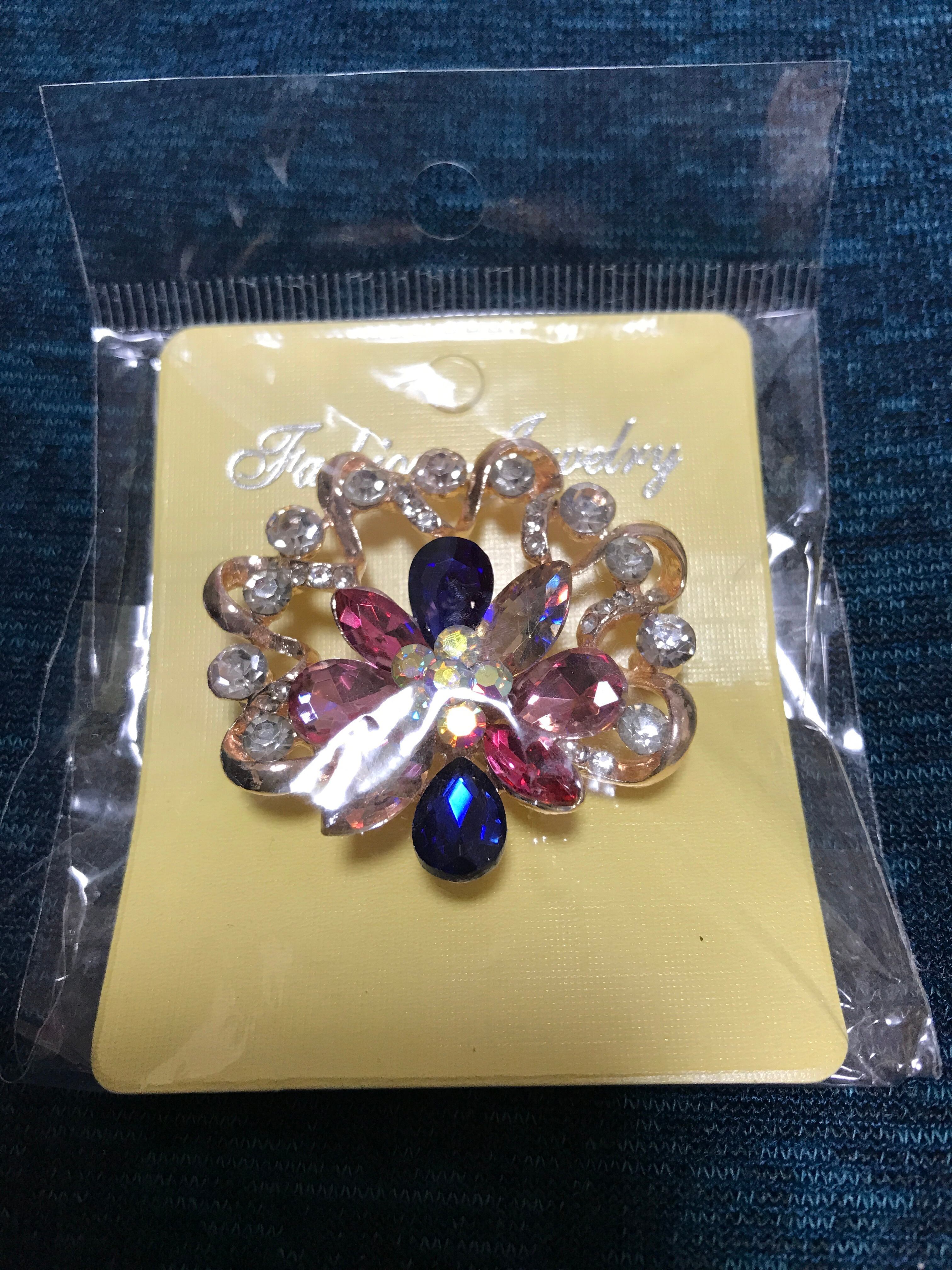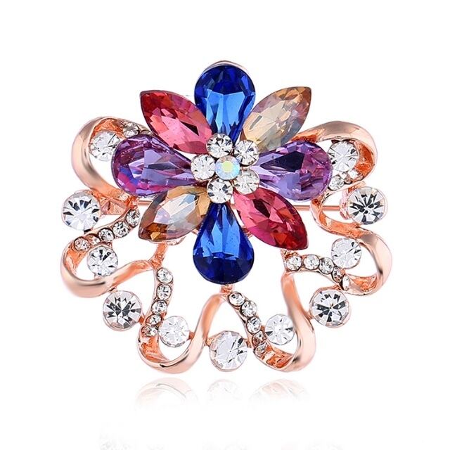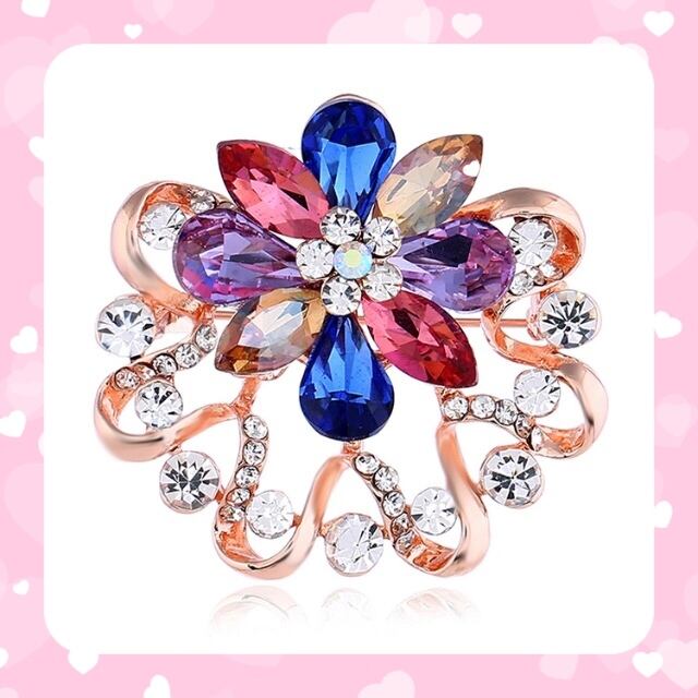 多彩なクリスタルラインストーンがキラキラ輝いてきれいなブローチです。